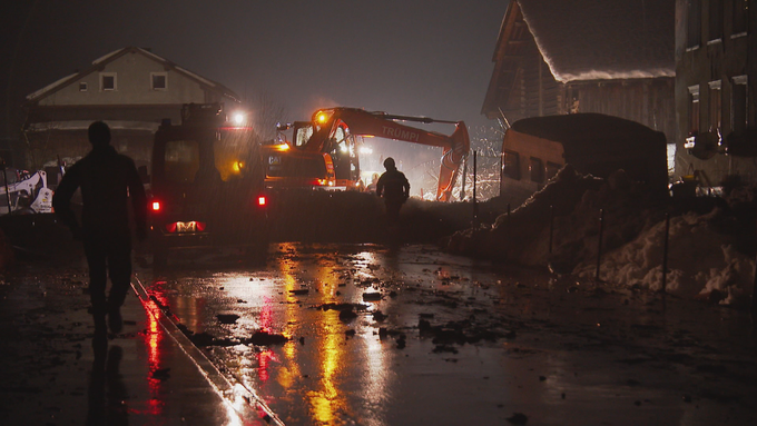 Die starken Regenfälle seit Dienstag führten am Mittwochabend im Kanton Glarus bereits zu Überschwemmungen. Die Hauptstrasse zwischen Luchsingen und Leuggelbach wurde gesperrt.