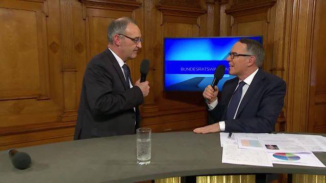 WiedergabelisteDas Wichtigste der Bundesratswahl 201525 MinInterview mit Guy Parmelin4 MinDas Wichtigste der Bundesratswahl 2015Live vor Ort berichteten Markus Gilli und Oliver Steffen von den Geschehnissen im Bundeshaus. Mit 138 Stimmen im dritten Wahlgang wird Guy Parmelin neuer SVP-Bundesrat.